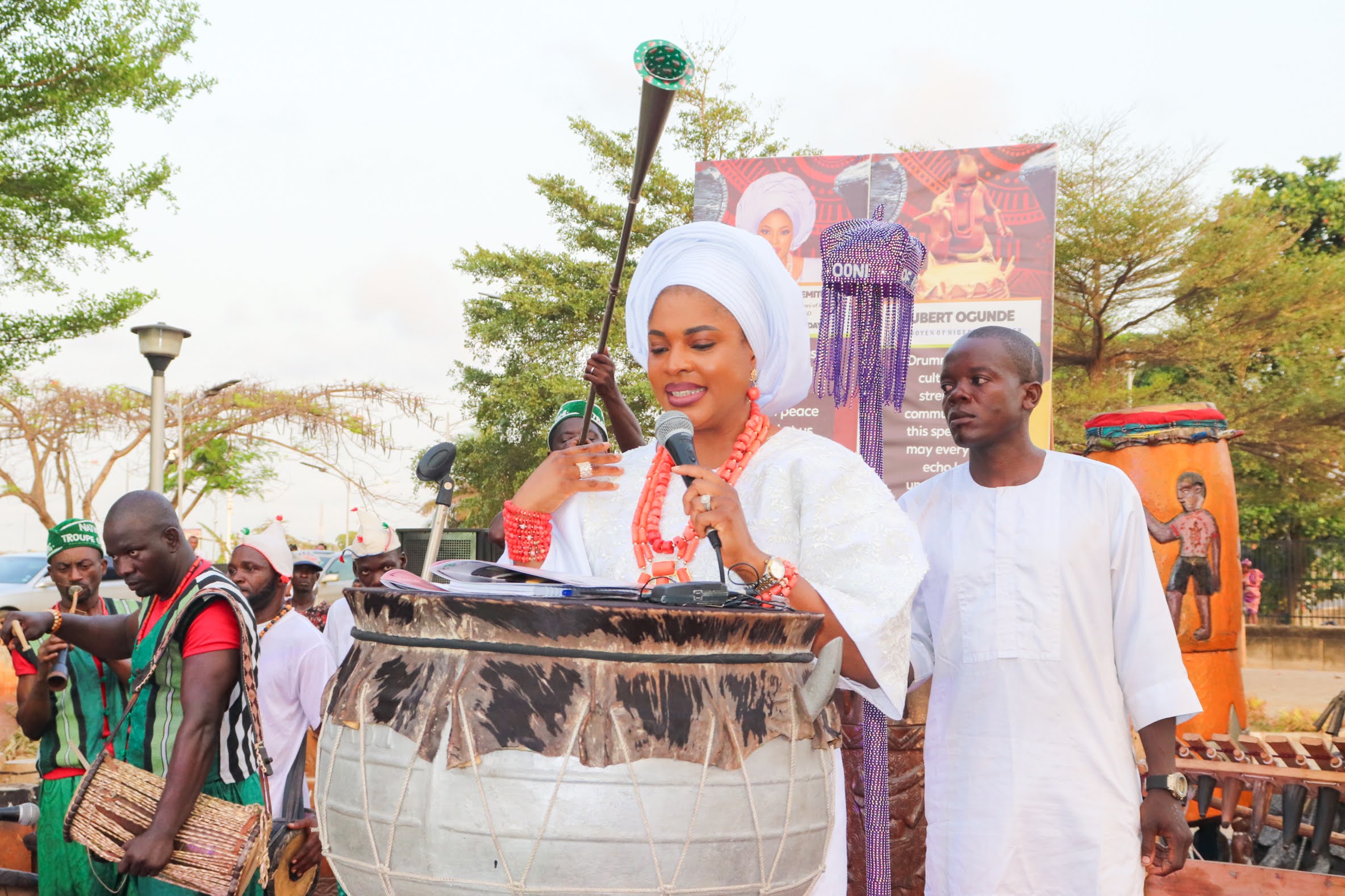 Awards were presented by the Olori Ooni of Ife before the festivities erupted into a spirited drum party, with dignitaries taking turns on the drums, while the National Troupe filled the hall with vibrant rhythms and dance, creating a truly electrifying atmosphere.
