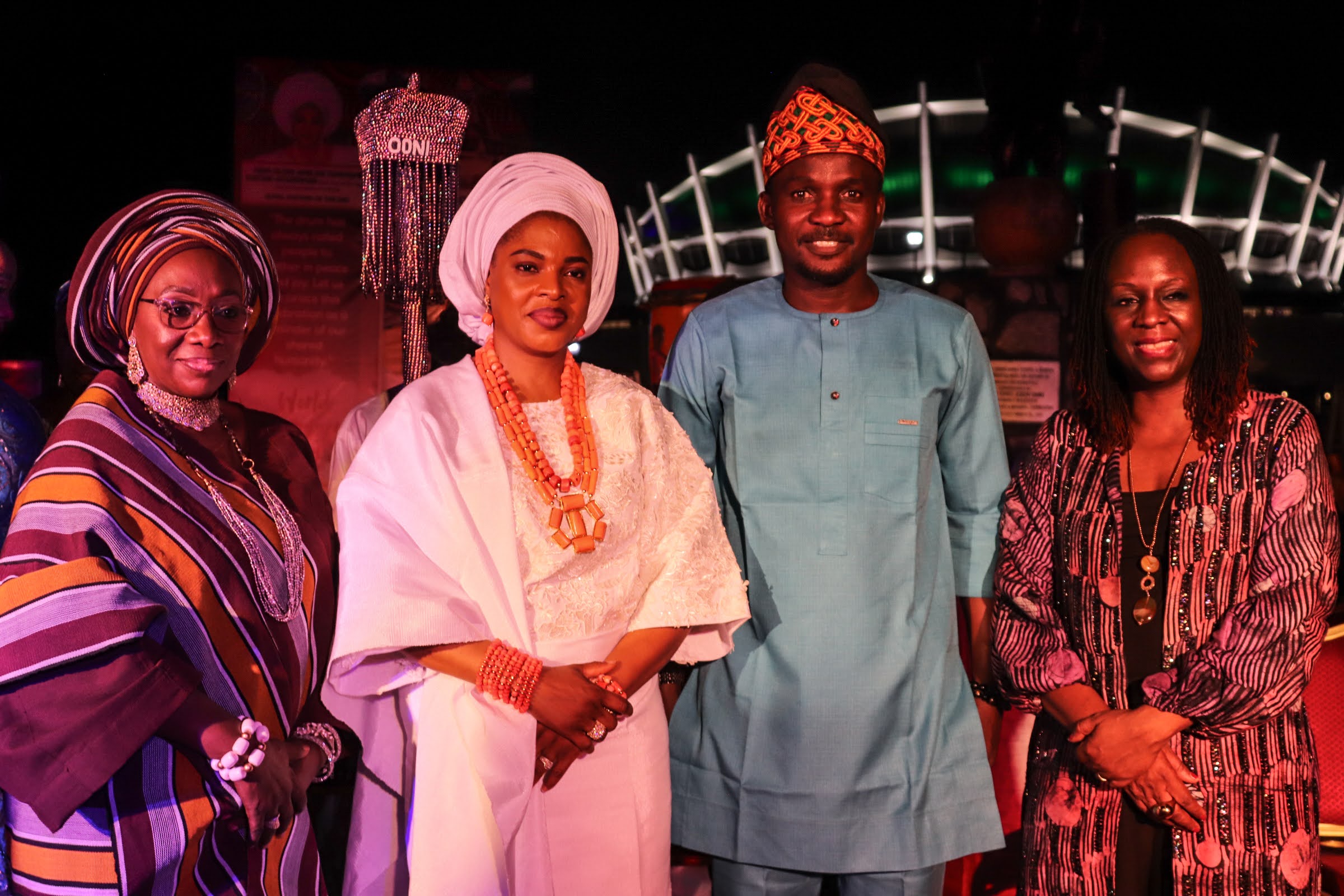 Awards were presented by the Olori Ooni of Ife before the festivities erupted into a spirited drum party, with dignitaries taking turns on the drums, while the National Troupe filled the hall with vibrant rhythms and dance, creating a truly electrifying atmosphere.