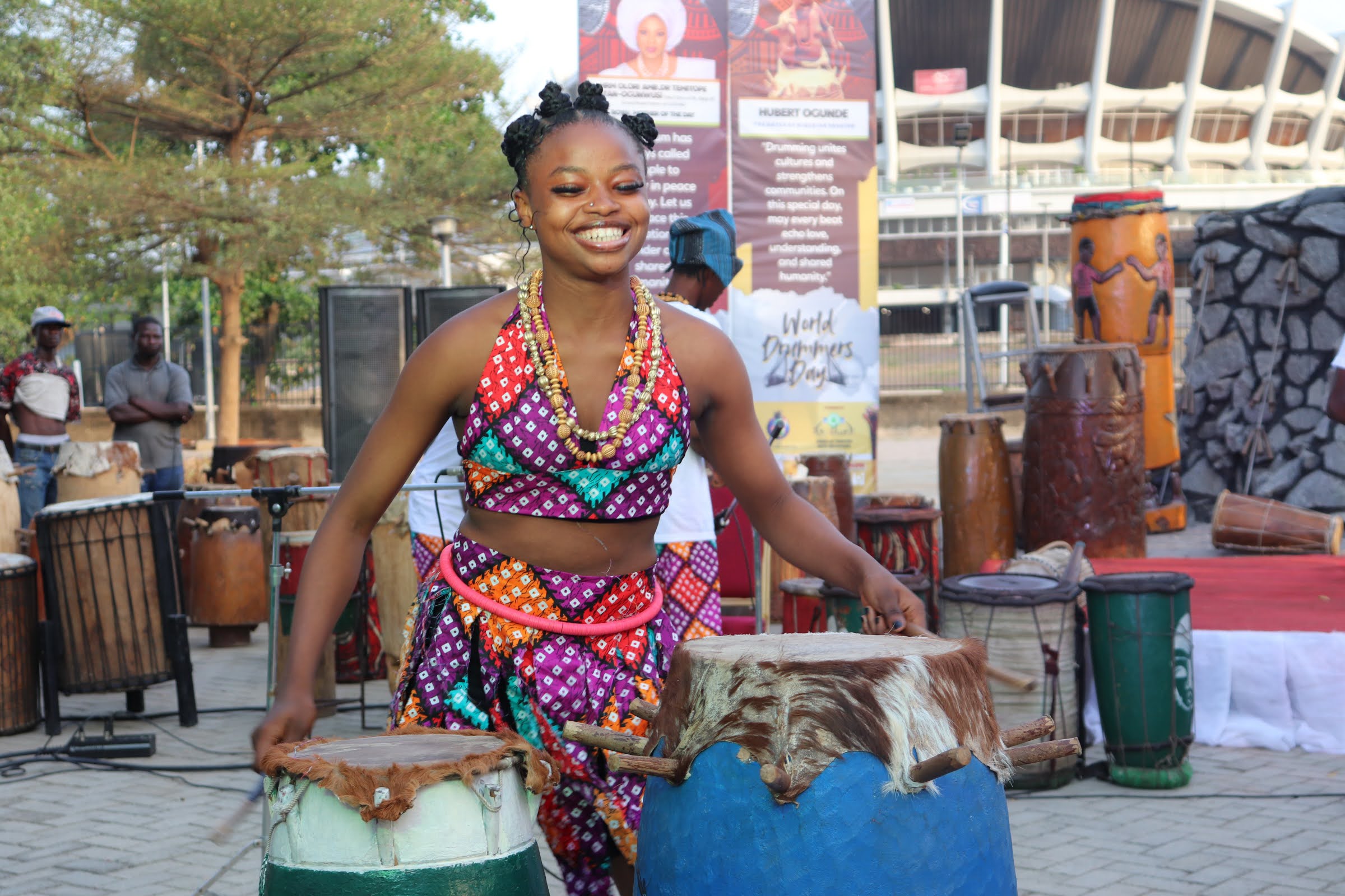World Drummers Day 2025 was marked with grandeur at the National Theatre on April 4, as GM/CEO Mrs. Tola Akerele hosted alongside Olori Amb. Dr. Temitope Enitan-Ogunwusi, with traditional leaders, Hajja Katume Bulama Gana of the National Troupe, and star drummer Ara in attendance.